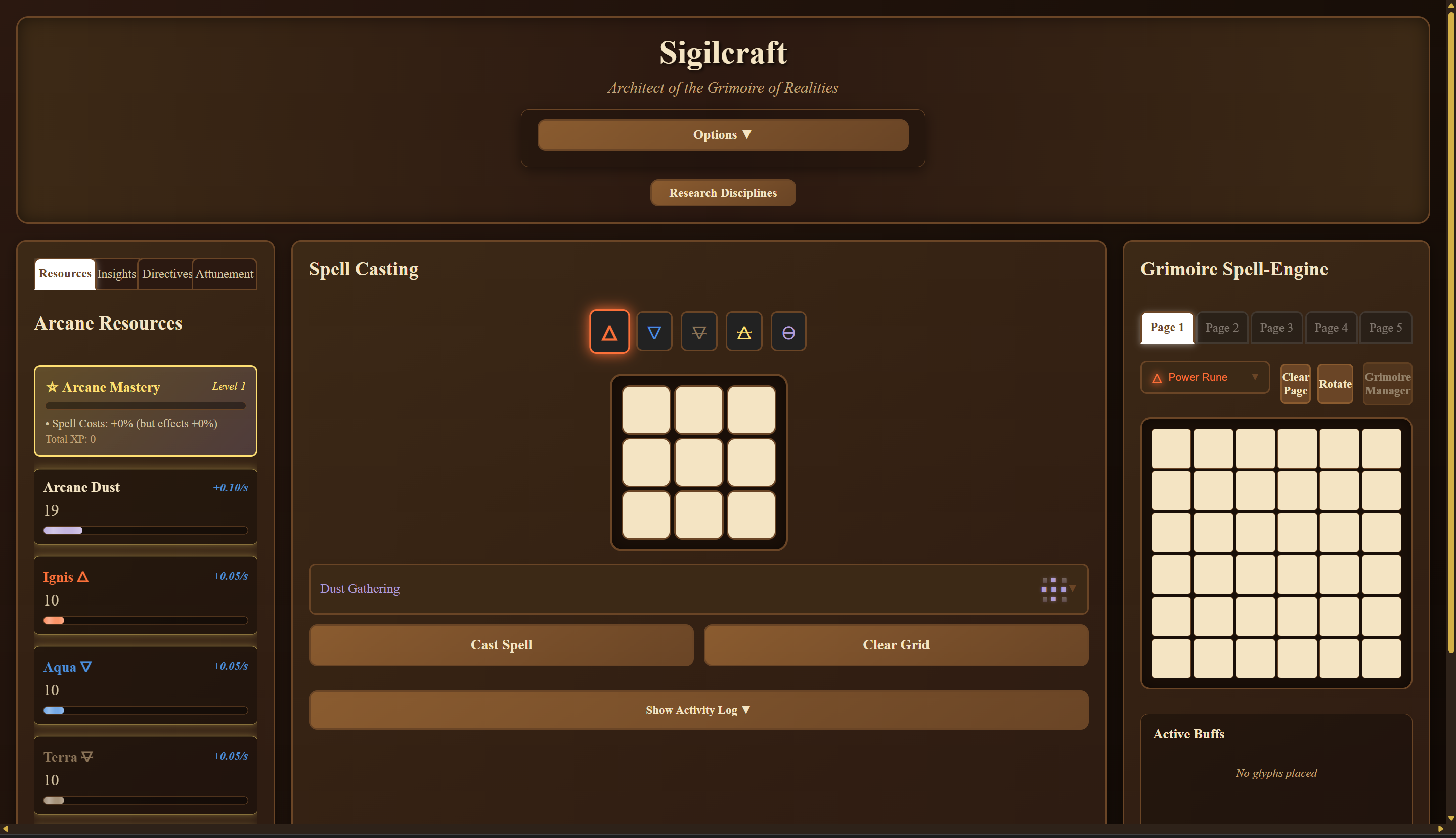In Sigilcraft, Crafters are tasked to master the art of glyph arrangement, elemental synergy, and magical growth through the refinement of the alchemical arts. Hone the spell grid within these pages and weave fate through your will, young Architect. Optimize this spell engine to manifest the reality to grow the library that is is the foundation of the mind. Discover your elemental attunement and master reality your way.