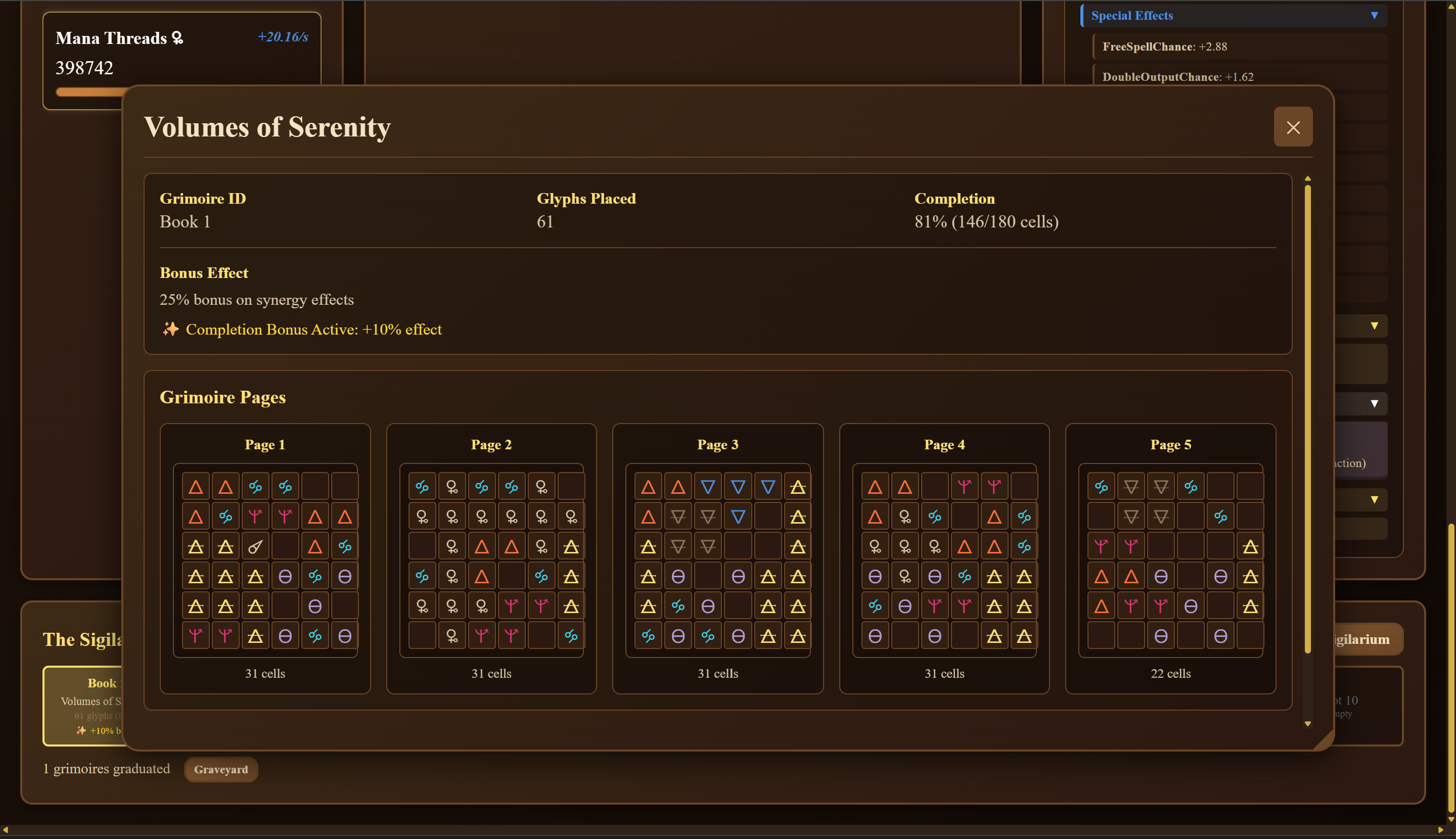 Buff System — Each glyph grants passive boosts; experiment with layouts to maximize power. Evolve your grimoires by maximizing your placements.